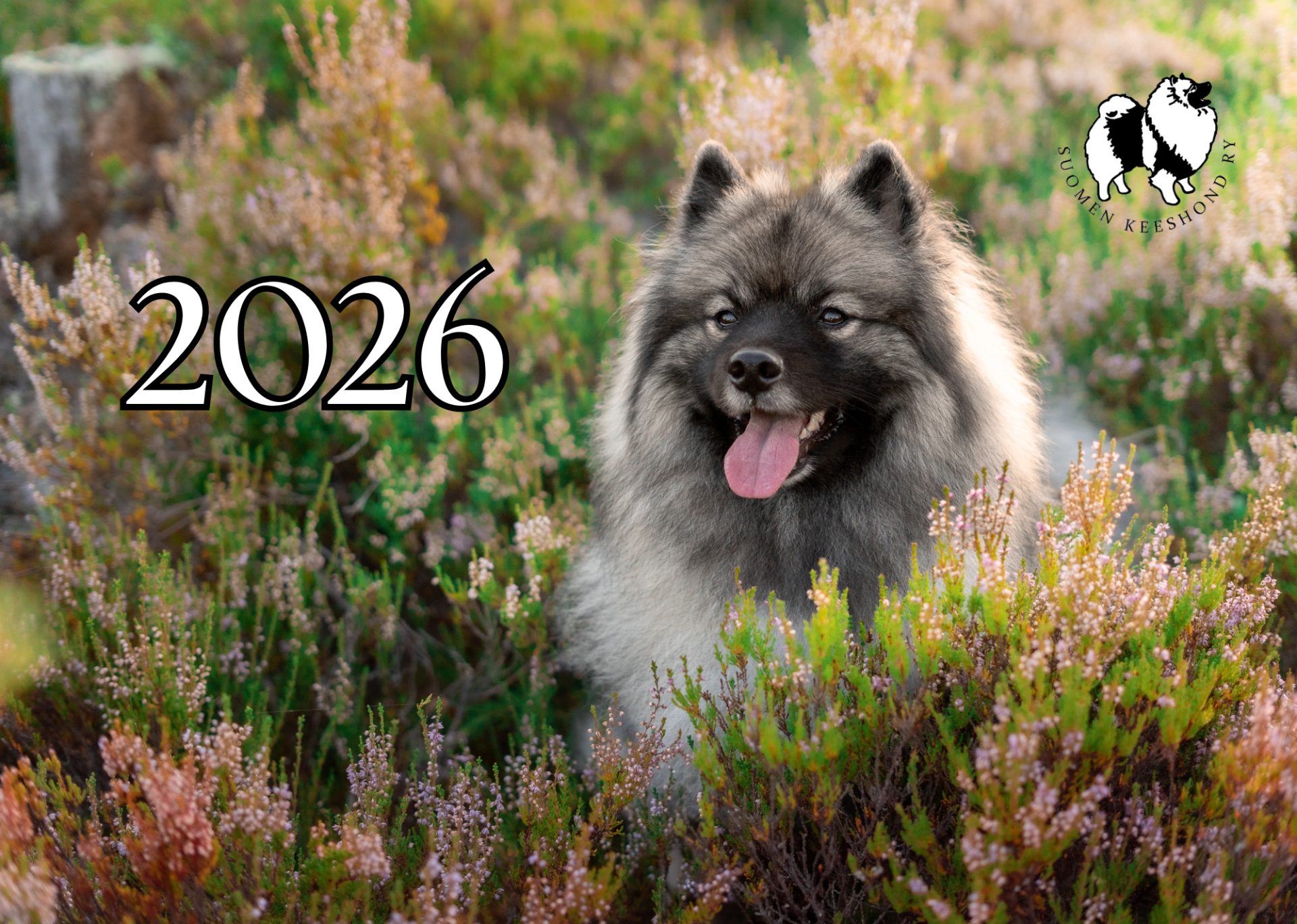 Suomen Keeshond ry oma vuoden 2026 Kessu-seinäkalenteri